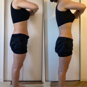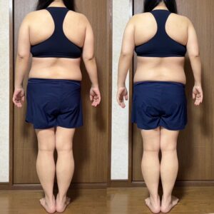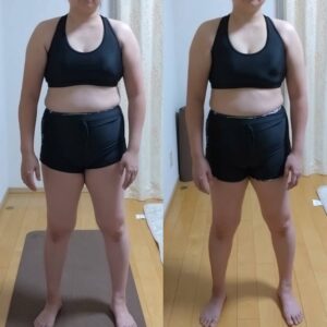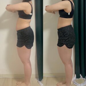 見た目そんなに変わってないんじゃないかな?と思っていたのでビフォーアフターの写真を見てかなり驚きましたし、体重面でも1.5kgも痩せられました✨