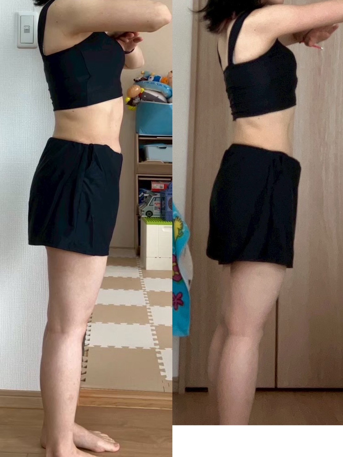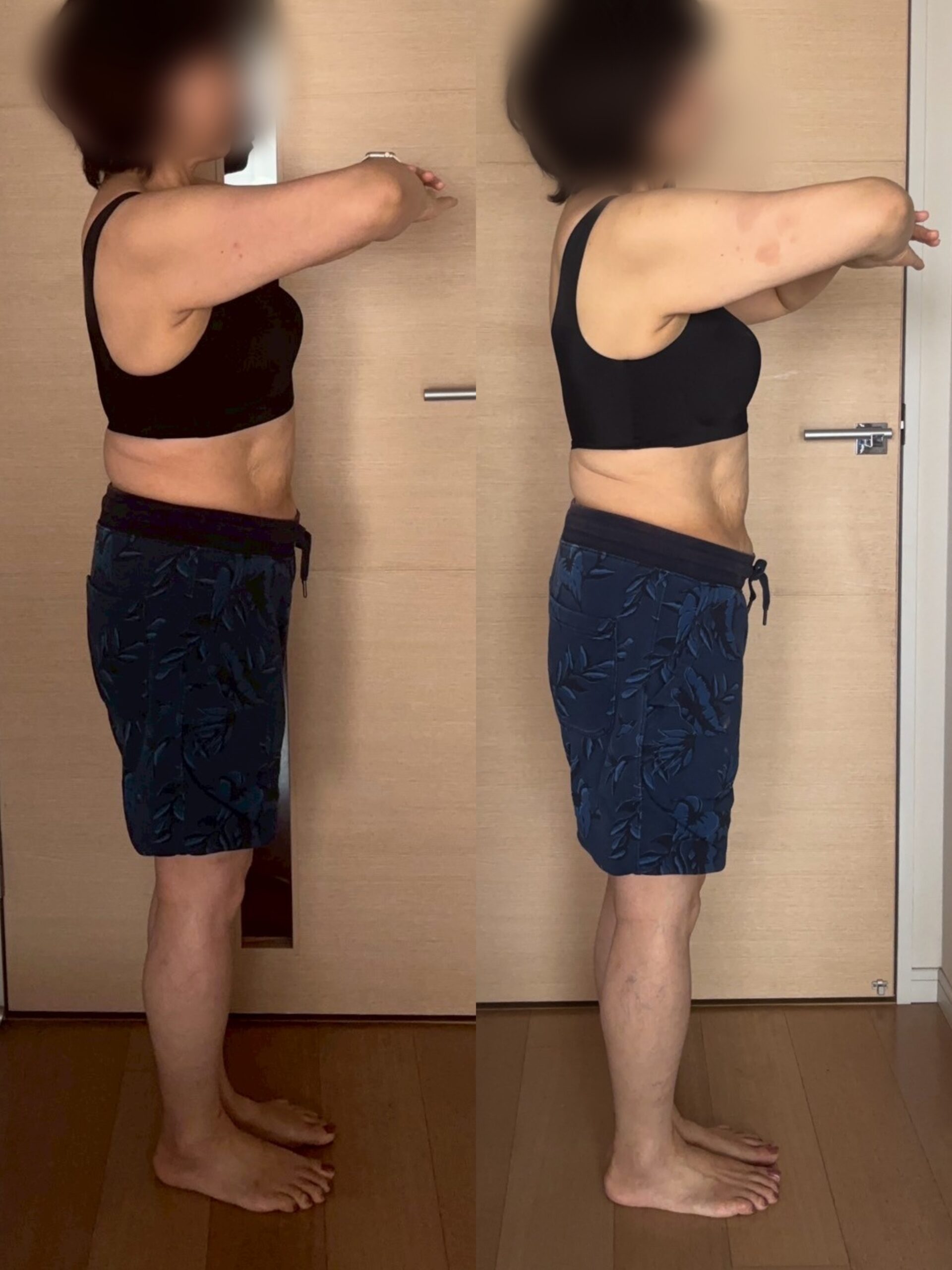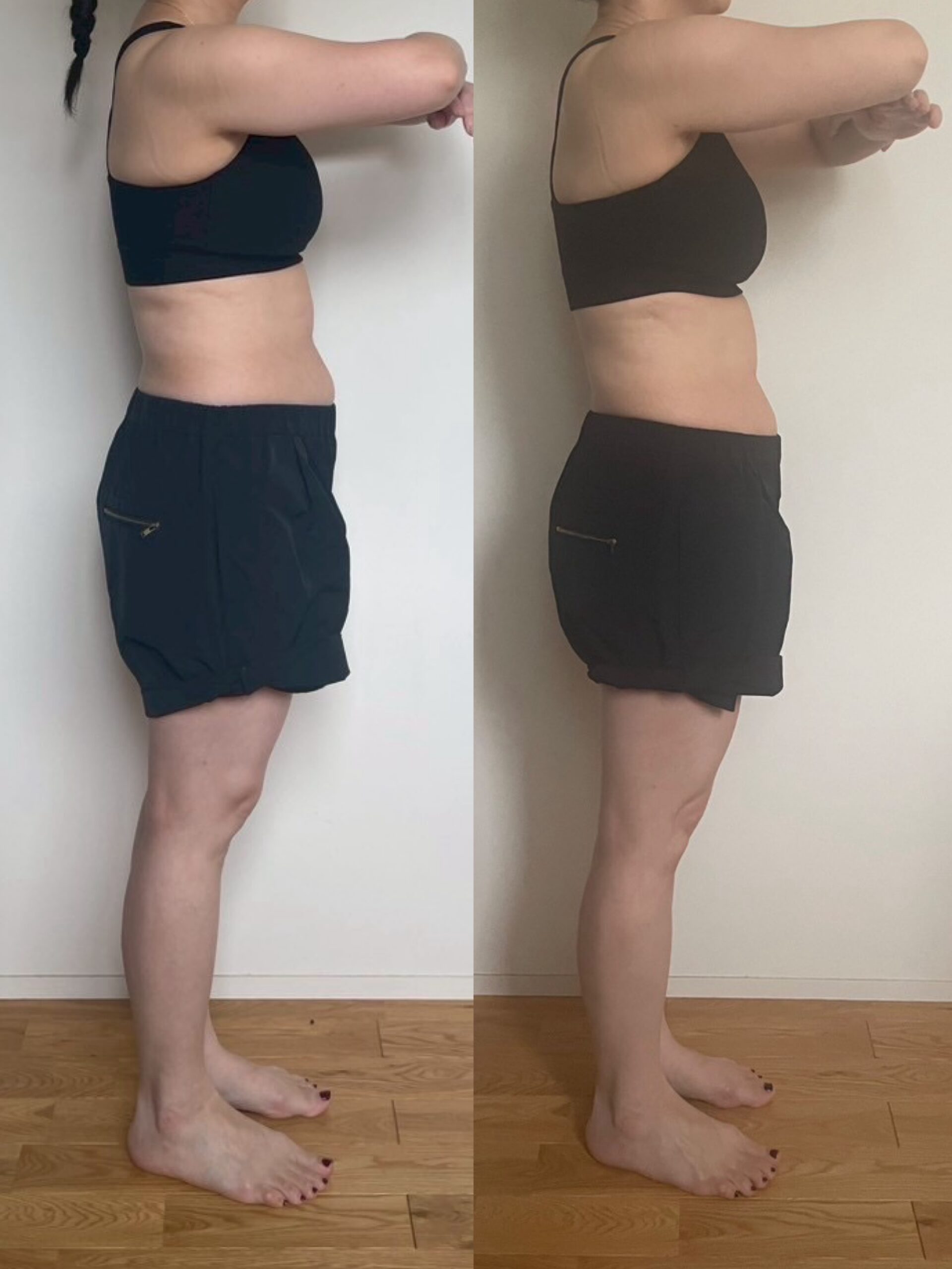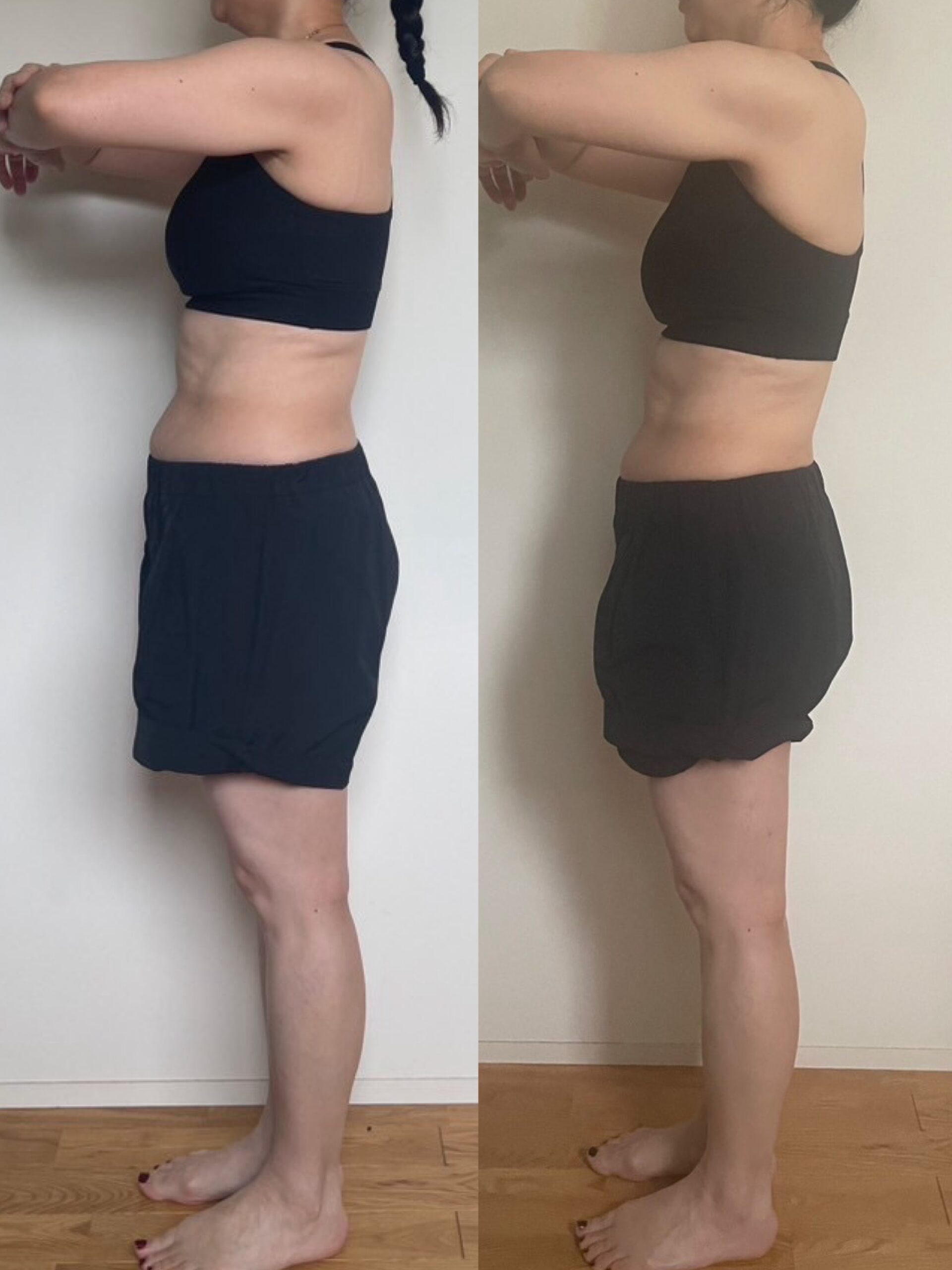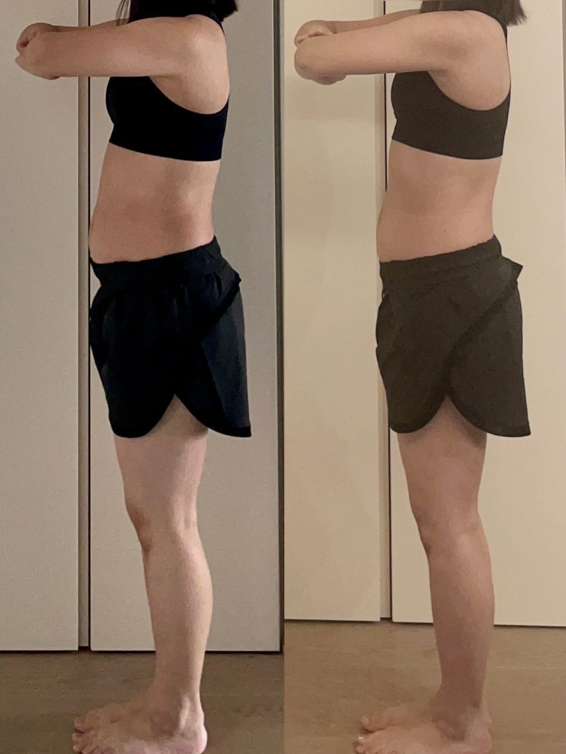 写真で見ると腰回りに変化もあり、これを地道に続けていくことが大事だなーと感じました☺️