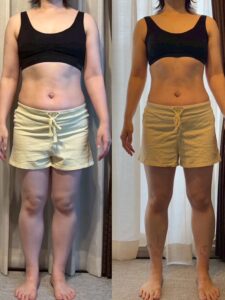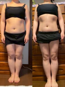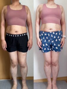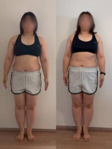 ただ指導されるだけ、教わるだけではなく、食事報告をすることがトレーナーさんに伝えるために言語化する練習になり、どうして食べたかったのか、どうすればもっとダイエット向きにできるかを自分で考える力がついてきたと思います。なんで痩せたのか(そしてなんで太ったのか)が分かるようになったから、多少爆食しても戻せるようになってきました。しっかり痩せてきている実感も得られたので、痩せることを焦らなくなり、市販のダイエットサプリみたいなものに心が揺らぐこともなくなりました。