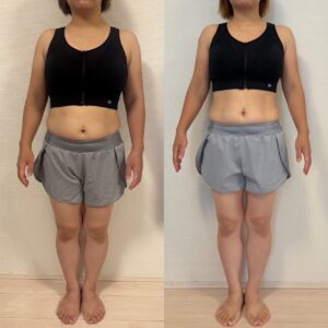 自分のペースやどうなりたいかという具体的な目標を大事にしてくださり、その中で無理なく進めてもらえてやってよかった、満足できることが日々ありました。お腹空いてすぐに食べてしまっては脂肪燃焼が起きず…ときいて、これが私が太り続けているの原因の1つだと気づき、がんばろうと言う気持ちが、我慢できる気持ちに繋がって継続できました。体重は気にしないと思いながらも少しずつ減っていくと嬉しくて、モチベーションがあがりました。