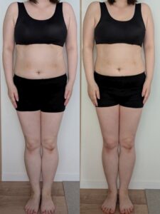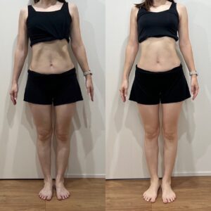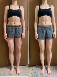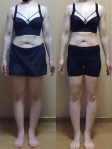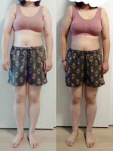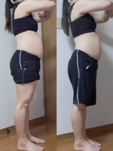 この1ヶ月で体重に大きな変化はなかったですが、お腹の張りが落ち着いてウエストが減ったのが嬉しいです。